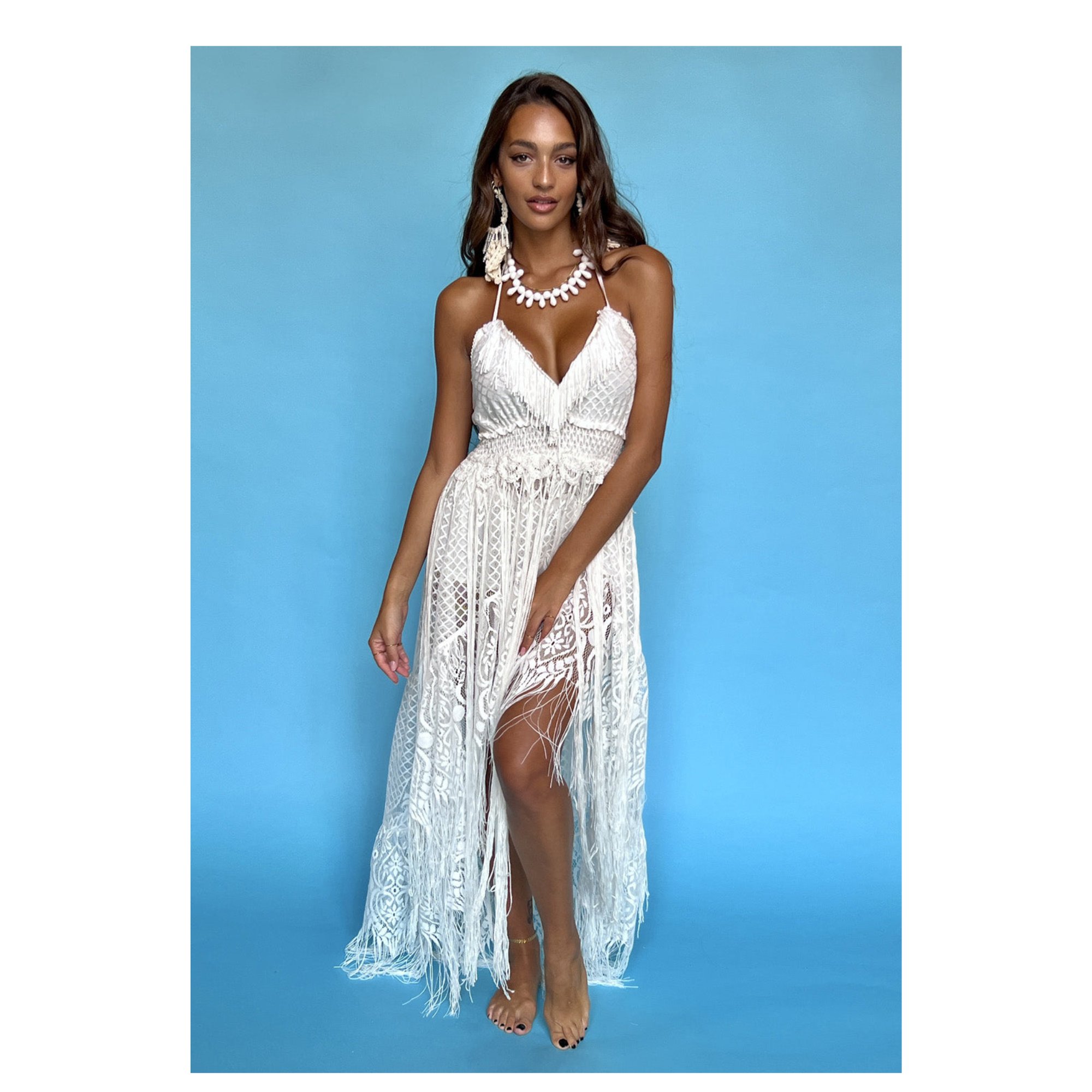 Az Antica Sartoria by Giacomo Cinque 2024-es kollekciójának egyik legkülönlegesebb darabja ez a hosszú ruha, amely eleganciát és nőies kifinomultságot sugároz. A nyitott hát részlet romantikus és merész megjelenést biztosít, így tökéletes választás nyári estékre, tengerparti vacsorákra vagy különleges alkalmakra.